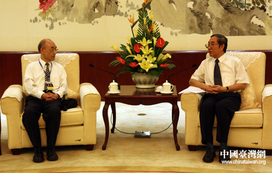 16日,廣西壯族自治區(qū)主席馬飚(右)在南寧會(huì)見(jiàn)了以臺(tái)灣政治大學(xué)教授張京育(左)為團(tuán)長(zhǎng)的臺(tái)灣嘉賓一行。(中國(guó)臺(tái)灣網(wǎng) 張弛 攝)