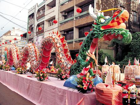 云林縣虎尾中元普度由面條組成的巨龍很有看頭。來源:臺灣《中國時報》