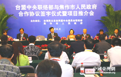 臺盟中央聯絡部與焦作簽訂合作協議 鼓勵臺資進豫