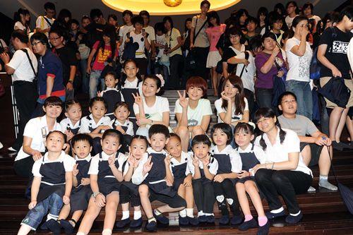 S.H.E 與慈濟工作人員以及歌迷在一起 圖片來源:臺灣“今日新聞網”