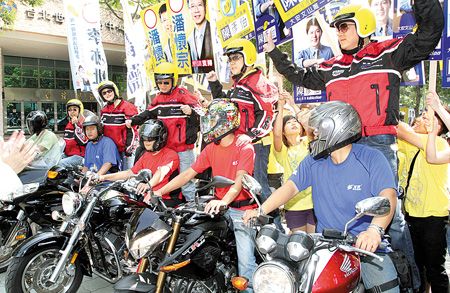 新黨市議員參選人集體乘坐重型摩托車抵達(dá)現(xiàn)場造勢。來源:臺灣《中國時報》