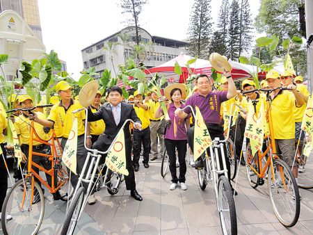 臺中市議員參選人以高頸自行車隊造勢。來源:臺灣《中國時報》