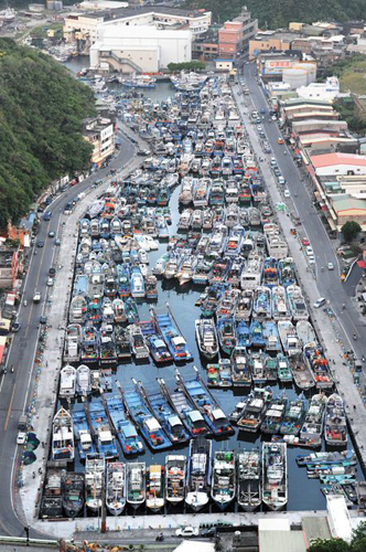 宜蘭縣南方澳漁港早就被進港避風的船只擠得是水泄不通。來源:臺灣《中國時報》