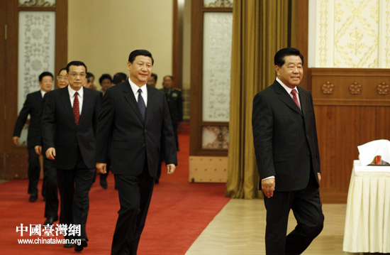 全國政協辦公廳、中共中央統戰部、國務院僑辦、國務院港澳辦和國務院臺辦29日晚在人民大會堂宴會廳聯合舉行國慶招待會。中共中央政治局常委、全國政協主席賈慶林,中共中央政治局常委、國家副主席習近平,中共中央政治局常委、國務院副總理李克強等共同出席。(中國臺灣網 鐘寶華 攝)