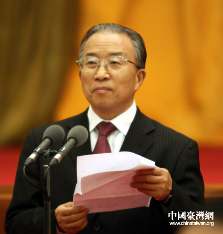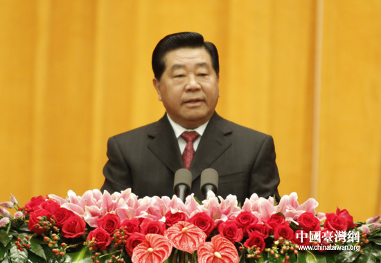 中共中央政治局常委、全國政協主席賈慶林在招待會上致辭。(中國臺灣網 鐘寶華 攝)