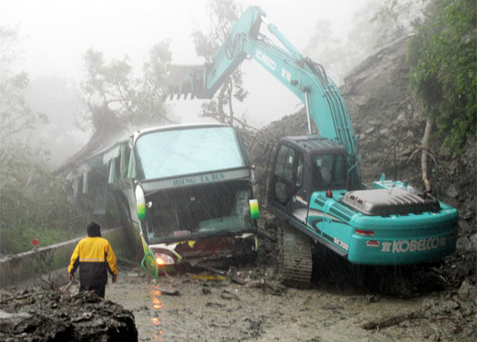 臺風“鲇魚”致蘇花公路嚴重塌方,工程人員22日上午全力搶修道路救援受困的人員 圖片來源:臺灣《聯合報》
