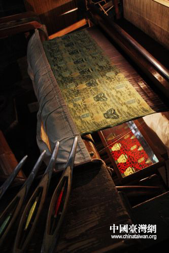 蜀錦織工工作位。錦下方的鏡子可以反映出正面圖案。(中國臺灣網(wǎng) 馬迪 攝)