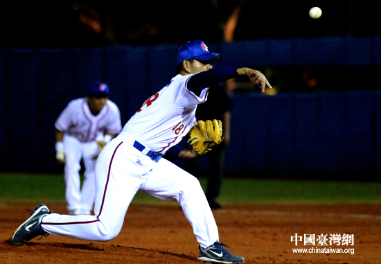 廣州亞運棒球決賽今晚進行,中華臺北隊與韓國隊爭奪金牌。圖為中華臺北隊投球。(中國臺灣網 沈鵬 攝)