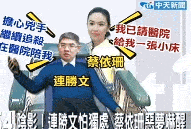 中國臺灣網(wǎng)12月1日消息 據(jù)臺灣中天電視臺報道,連戰(zhàn)之子、國民黨中央委員連勝文遭槍擊案至今還迷霧重重。正在臺大醫(yī)院治療的連勝文擔(dān)憂兇手有幕后共犯,到醫(yī)院行兇滅口,希望妻子蔡依珊可以到醫(yī)院陪她;蔡依珊也擔(dān)憂丈夫安危及心理狀況,便入住連勝文病房,隨侍在側(cè)。