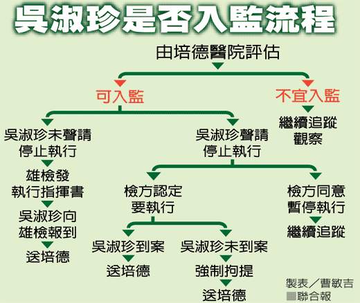 評估吳淑珍是否入監服刑流程。 來源:臺灣《聯合報》