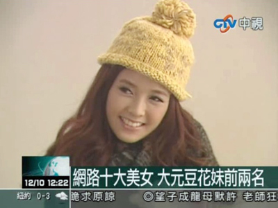 據(jù)報道,臺灣網(wǎng)絡(luò)知名部落格公布今年人氣最旺的正妹型男排行榜,《大學生了沒》節(jié)目固定班底的大元,以自然甜美的模樣,被封為新一代的網(wǎng)絡(luò)甜美女神,部落格人氣直沖700多萬,獲得正妹排行第一名。