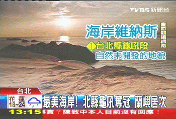 臺北縣萬里鄉的龜吼路段,有多處海岸景點,并以地貌景觀和自然特色,拿下最佳維納斯海岸線的第1名。圖片來源:臺灣TVBS電視臺