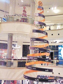 飛天彩帶 臺北市信義計畫區百貨公司內應景掛上圣誕樹,讓人感覺到1年真的快結束了。圖片來源:臺灣《中國時報》