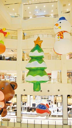 魔幻飄浮 桃園縣臺茂購物中心運用中央區挑空9層樓高,斥資200萬新臺幣訂制圣誕樹與小熊、雪人等巨型氣球,創造出飄浮在空中的效果。圖片來源:臺灣《中國時報》