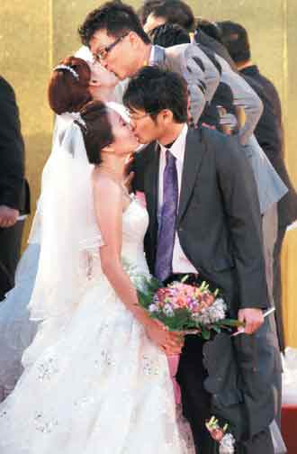 中國臺灣網(wǎng)1月2日消息 綜合臺灣媒體報道,2011年元旦全臺涌現(xiàn)“結(jié)婚潮”,不僅結(jié)婚人數(shù)創(chuàng)歷史最高紀錄,婚禮形式也極具創(chuàng)意,引發(fā)島內(nèi)民眾和媒體的強烈關(guān)注。