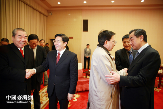 17日晚,廣西壯族自治區(qū)黨委書記郭聲琨和中臺辦、國臺辦主任王毅一起,會見來桂林參加第九屆兩岸關(guān)系研討會的臺灣中華文化總會會長劉兆玄等嘉賓。(中國臺灣網(wǎng) 鐘寶華 攝)