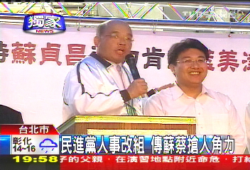 臺媒:民進黨人事改組搶人挖角 蔡蘇2012出線戰揭幕