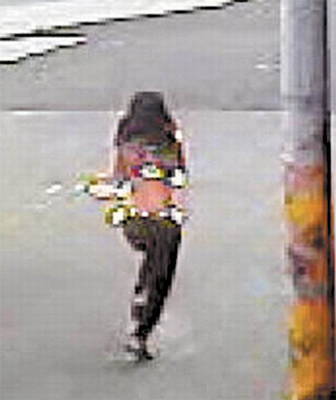 女子驚慌狂奔喊叫求救,因奔跑時風力助長火勢,連頭發都燒起來,像個火球。來源:臺灣媒體