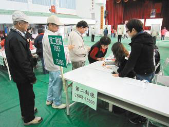 民進黨臺中、臺南、高雄三都市黨部主委今天改選,由于臺中、臺南兩市競爭激烈,上午投票情形相當踴躍。圖為臺中市投票情形。圖片來源:臺灣《聯合晚報》