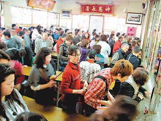 南投紫南宮借貸處大年初四擠滿求借發財金的信眾。來源:臺灣《聯合報》