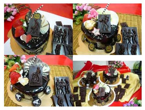 蛋糕上的巧克力印滿各種的性愛姿勢,讓人看了臉紅心跳。圖片來源:臺灣“今日新聞網”