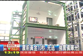 據報道,臺灣地震研究部門模擬臺灣9·21大地震(20世紀末期臺灣最大的地震,發生時間為1999年9月21日凌晨,震中位于臺灣南投縣,共造成2000多人死亡)對該系統進行了測試。數據顯示,這套系統能幫臺中大里的住戶爭取到7秒鐘的逃生時間,其它地區則可達到10秒以上的逃生時間。未來強震儀量產后,只要在學校裝一套,周邊住戶都能受惠。