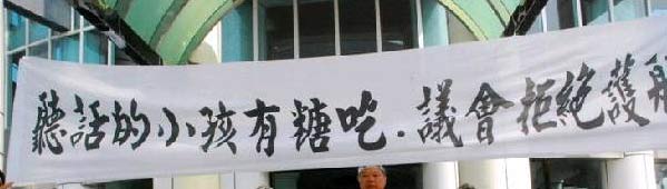 不過就在會議進行的同時,臺南市無黨籍議員曾順良帶領群眾頭綁抗議布條,在議會門口呼口號。曾順良痛批賴清德讓議會污名化,要求與市長公開辯論。有民眾提著鐵籠,內裝2只白雞,曾順良同民眾一同到廟里斬雞頭發誓,“任內絕不接受任何議員提出建議權”,以示清白。(中國臺灣網 馮存健)