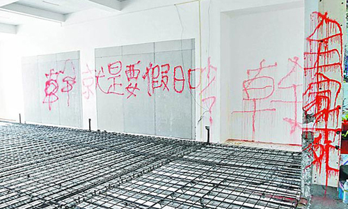 承包商指出,承包學(xué)生餐廳一至三樓修整工程,二月起施工,預(yù)定八月完工,若違約每日需罰款新臺幣7850元,因此假日也須施工。2月21日,餐廳一樓墻壁及玻璃窗被人噴漆寫字“假日還吵,干你老母”、“再吵全家死光”等字眼。4月4日承包商敲除三樓墻壁,竟有人從餐廳西南側(cè)博士班宿舍丟來裝水瓶罐,承包商無奈通報校警。5日又發(fā)現(xiàn)墻壁及天花板電燈被噴紅漆罵臟話,承包商調(diào)監(jiān)視器后,發(fā)現(xiàn)疑似二名博士班學(xué)生所為,現(xiàn)已將畫面交校方調(diào)查。(中國臺灣網(wǎng) 吳斌)
