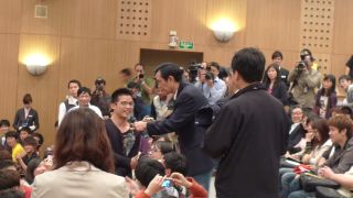 據報道,馬英九魅力難檔,進入臺灣科技大學演講廳時,受到學生熱烈鼓掌歡迎。臺科大設計得獎學生李佩雯和葉銘泓一開始便邀請邀請馬英九一起玩30秒圓圈繪圖游戲,李佩雯表示,要挖出馬英九的腦礦。