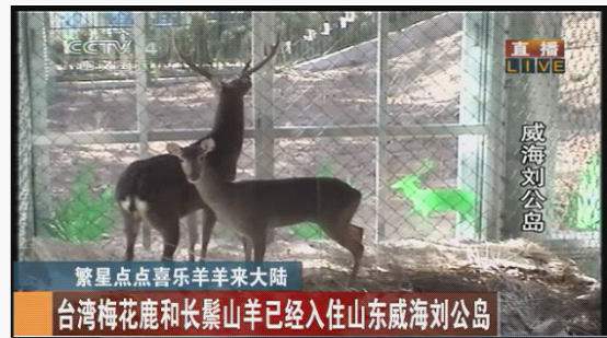 梅花鹿繁星、點點抵達劉公島國家深林公園。圖片來源:中央電視臺