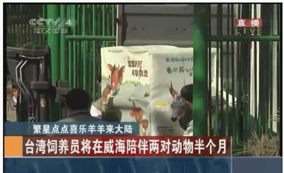 臺贈大陸長鬃山羊抵達劉公島。圖片來源:中央電視臺