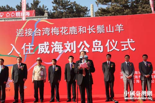 當(dāng)天,劉公島國(guó)家森林公園天空明朗,海水蔚藍(lán),島上鮮花絢爛,歡聲笑語(yǔ)不斷。中央有關(guān)主管部門、山東省和威海市的有關(guān)負(fù)責(zé)同志、臺(tái)灣歡送梅花鹿和長(zhǎng)鬃山羊代表團(tuán)成員、臺(tái)資企業(yè)代表和威海市民代表等500余人參加了儀式。