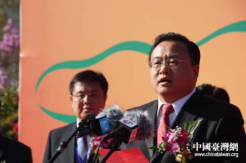中共威海市委書記王培廷致歡迎詞。(中國(guó)臺(tái)灣網(wǎng) 劉海偉攝)