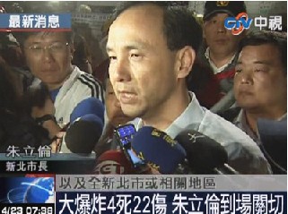 大爆炸4死22傷,新北市長朱立倫到場關(guān)切。圖片來源:臺(tái)灣“今日新聞網(wǎng)”