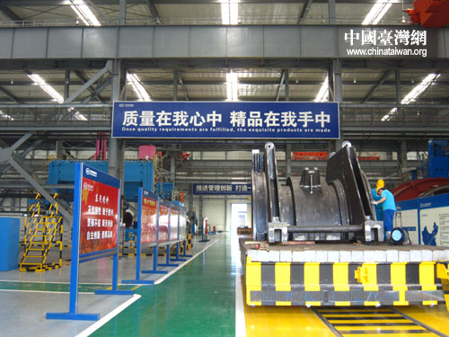 東汽廠房內(nèi)部,“東汽精神”、“質(zhì)量在我心中 精品在我手中”,“推進管理創(chuàng)新 打造一流團隊”,“建設(shè)學習型組織 做知識型員工”,“誠信,嚴謹,創(chuàng)新,高效”等等標語隨處可見,體現(xiàn)了東汽獨特的企業(yè)文化。(中國臺灣網(wǎng) 朱毅 攝)