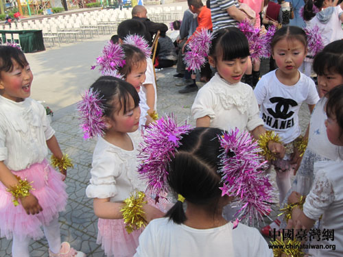 馬祖新村恢復重建取得巨大成功,圖為馬祖村的小朋友為上節目做準備。(中國臺灣網 朱毅 攝)