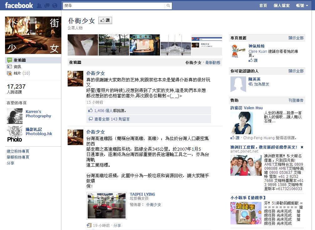 仆街少女的臉書爆火。圖片來源:臺灣媒體