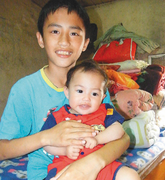 讀小學6年級的長子彭孟毅很會照顧弟妹,但他說,爸媽一直生,他有點累了。圖片來源:臺灣《聯合報》