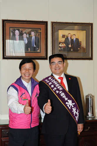 陳光標還表示,由于自己無法去臺灣領獎,今年4月,臺灣周大觀文教基金會的負責人周進華親自來到南京他的公司面談,為他披上綬帶并呈上連戰的老師陳大絡的題詞。
