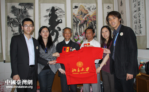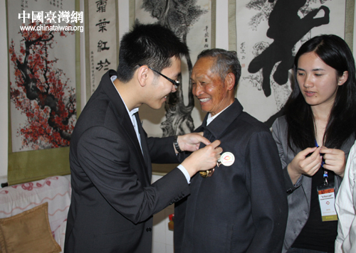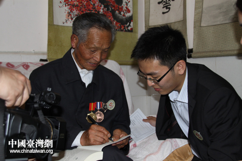 盧彩文老兵在王正所攜帶的《中國遠征軍》一書上簽名(中國臺灣網(wǎng) 楊永青 攝) 王正為盧彩文老兵佩戴“追尋歷史足跡”活動的徽章(中國臺灣網(wǎng) 楊永青 攝) 盧彩文、邵應壬老兵與四位臺籍學生合影(中國臺灣網(wǎng) 楊永青 攝) 盧彩文、邵應壬老兵二人感情深厚,接受記者采訪時亦親密搭肩。(中國臺灣網(wǎng) 楊永青 攝) 同學們在邵應壬老兵家的院子里合影(中國臺灣網(wǎng) 楊永青 攝)