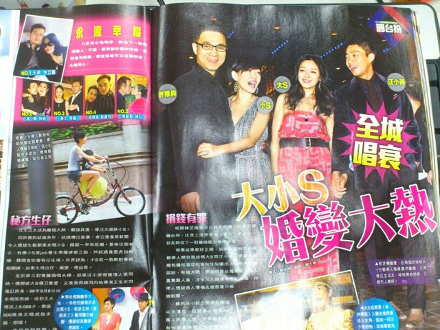 據報道,網友最唱衰的就是“大S、汪小菲”夫妻檔,認為結個婚搞的天翻地覆、媒體全面不爽,婚后捐款疑云讓人更加討厭,這兩天還有大陸模特跳出來攪局。第二唱衰的則是汪小菲小姨子,也就是“小S、許雅鈞”夫婦,網友指出因為小S一直生女孩,因此第三胎絕對是婚姻關鍵。第三對則是汪小菲前女友“張雨綺、導演王全安”夫婦,網友認為張雨綺嫁給王導的速度比“大小戀”還快,只是一時意氣,過了蜜月期就會進入危機。(中國臺灣網 吳斌)