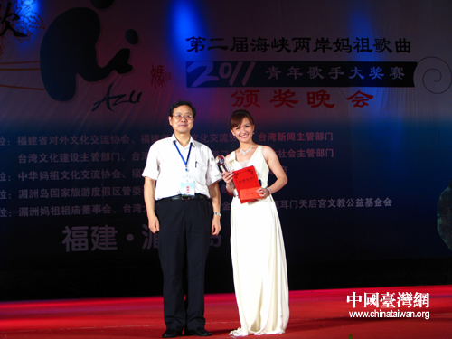 一等獎(jiǎng)獲得者周慧珊接受頒獎(jiǎng)。(中國臺灣網(wǎng) 馬迪 攝)