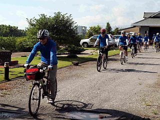 臺灣宜蘭地區(qū)20多名退休及在職校長,今(12)日以騎乘自行車的方式,體驗臺灣世界展望會的“饑餓30”活動。圖片來源:臺灣“中廣新聞網(wǎng)”