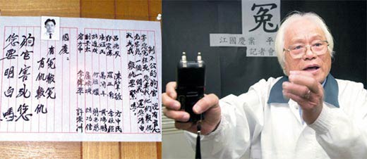 15年前在臺空戰(zhàn)部服役的上等兵江國慶被槍決后,他的父親江支安多年不懈提醒自己為兒子洗清冤情。圖片來源:臺灣媒體
