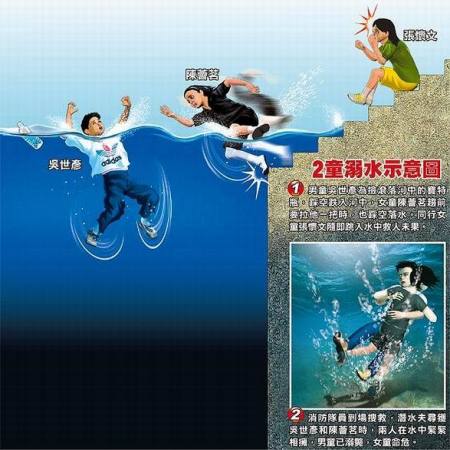 據(jù)臺媒了解,吳世彥和陳薈茗上周六才剛剛小學畢業(yè),暑假后,他們就要展開中學生活。昨天與吳、陳同行的女同學張懷文向警方說,昨天上午7時許,吳世彥騎腳踏車載著陳薈茗,和她分騎兩輛腳踏車前往微風運河,3人在運河一處河岸停好車,脫下鞋,走到最靠近河面的階梯席地而坐,邊聊天邊喝飲料。