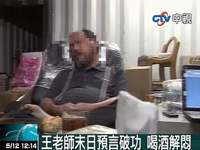 末日預(yù)言成末日謊言,“王老師”喝酒解悶。圖片來源:臺(tái)灣今日新聞網(wǎng)