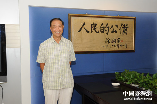 黃埔軍校同學會紀念中國共產黨建黨90周年報告會6月24日上午在北京舉行,圖為會議開始前,在京黃埔親屬代表徐小巖在父親題字前留影。(中國臺灣網發)