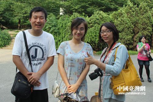 北京交通大學趙暉、武漢大學喻釋然、臺灣大學李曉蓉三人離別前合影留念(中國臺灣網 李丹 攝)