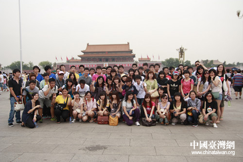 兩岸青年學(xué)生在天安門廣場合影留念(中國臺灣網(wǎng) 劉承思 攝)