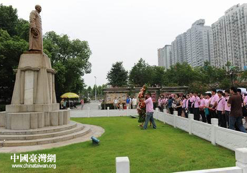 兩岸學子共同向中山先生銅像敬獻花籃(湖北省臺辦 陸勝 攝)